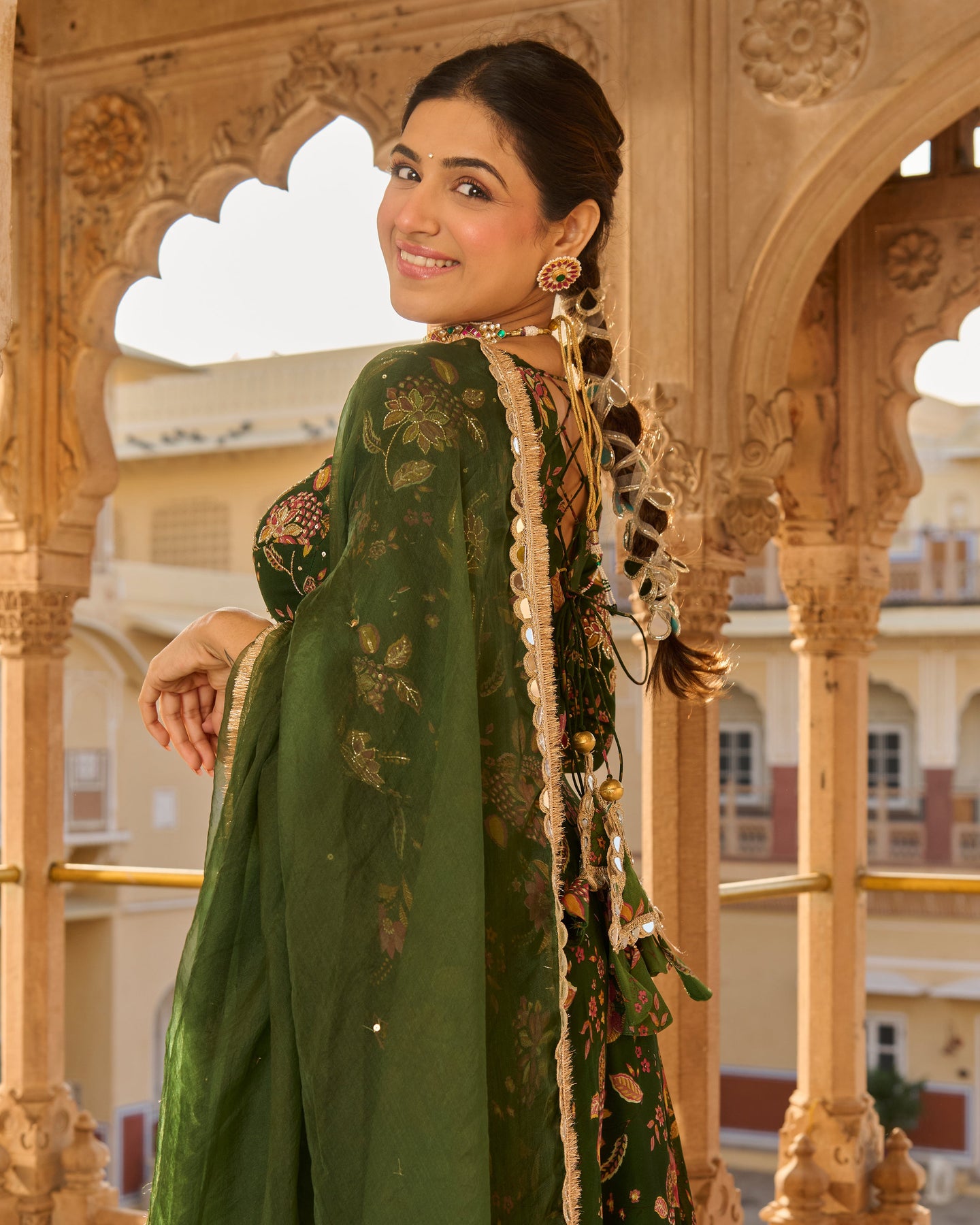 Its beautiful! . Creative. Bottom looks like rose petals near floor. Blouse is totally adjustable along with unique back. Diwali Dream Outfit Came true. However, I wish chunni was of cotton. ORDER atleast one size up.