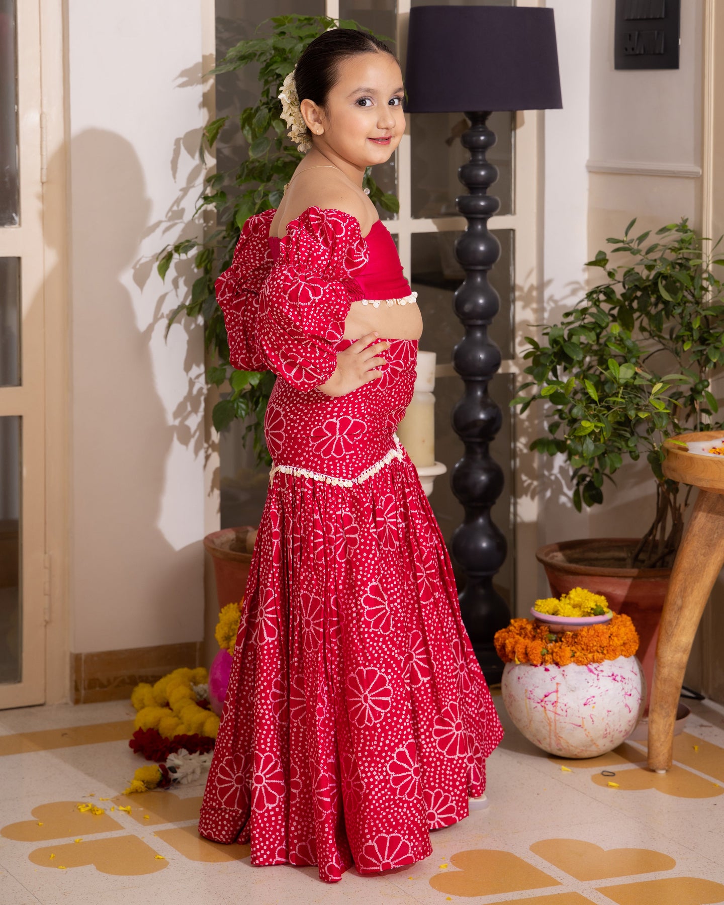 Nayra Pink Bandhani Chanderi Lehenga Set
