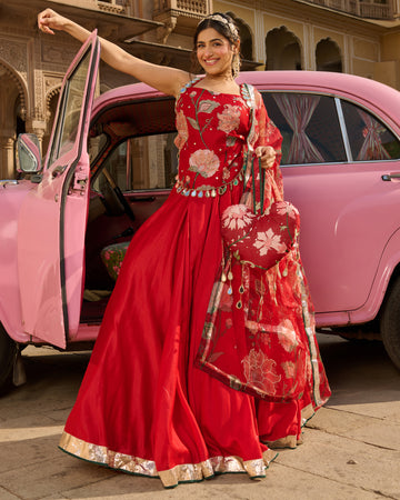 Razzle Pink Embroidered Tabby Silk Lehenga Set