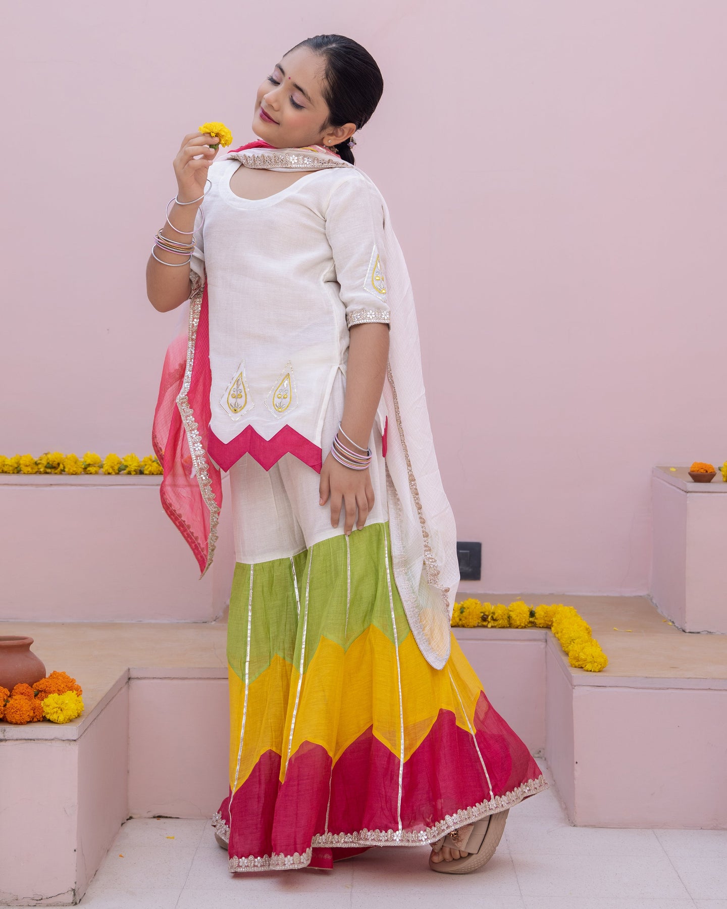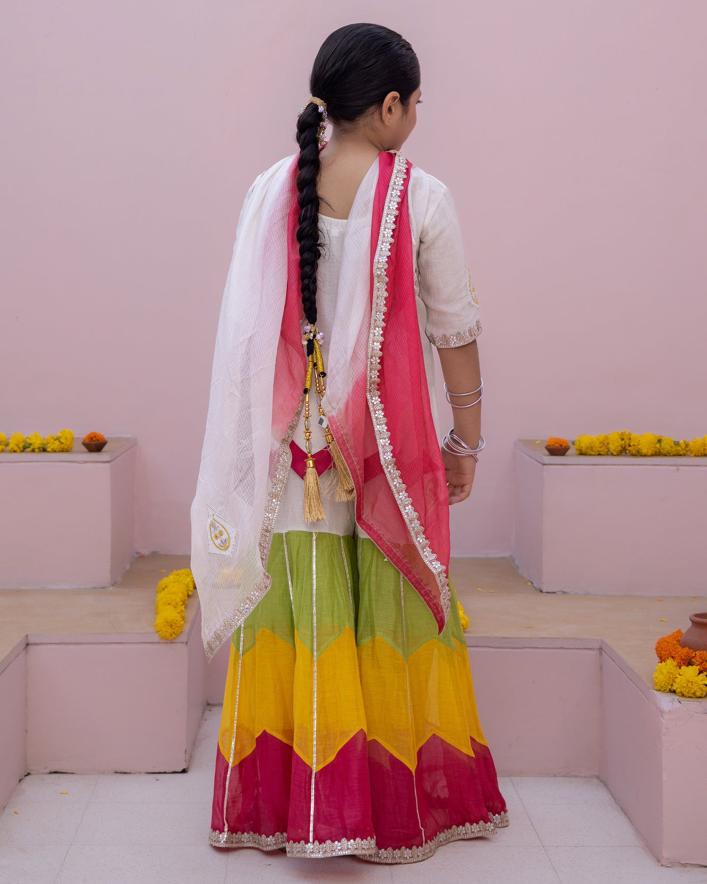 Its beautiful! . Creative. Bottom looks like rose petals near floor. Blouse is totally adjustable along with unique back. Diwali Dream Outfit Came true. However, I wish chunni was of cotton. ORDER atleast one size up.