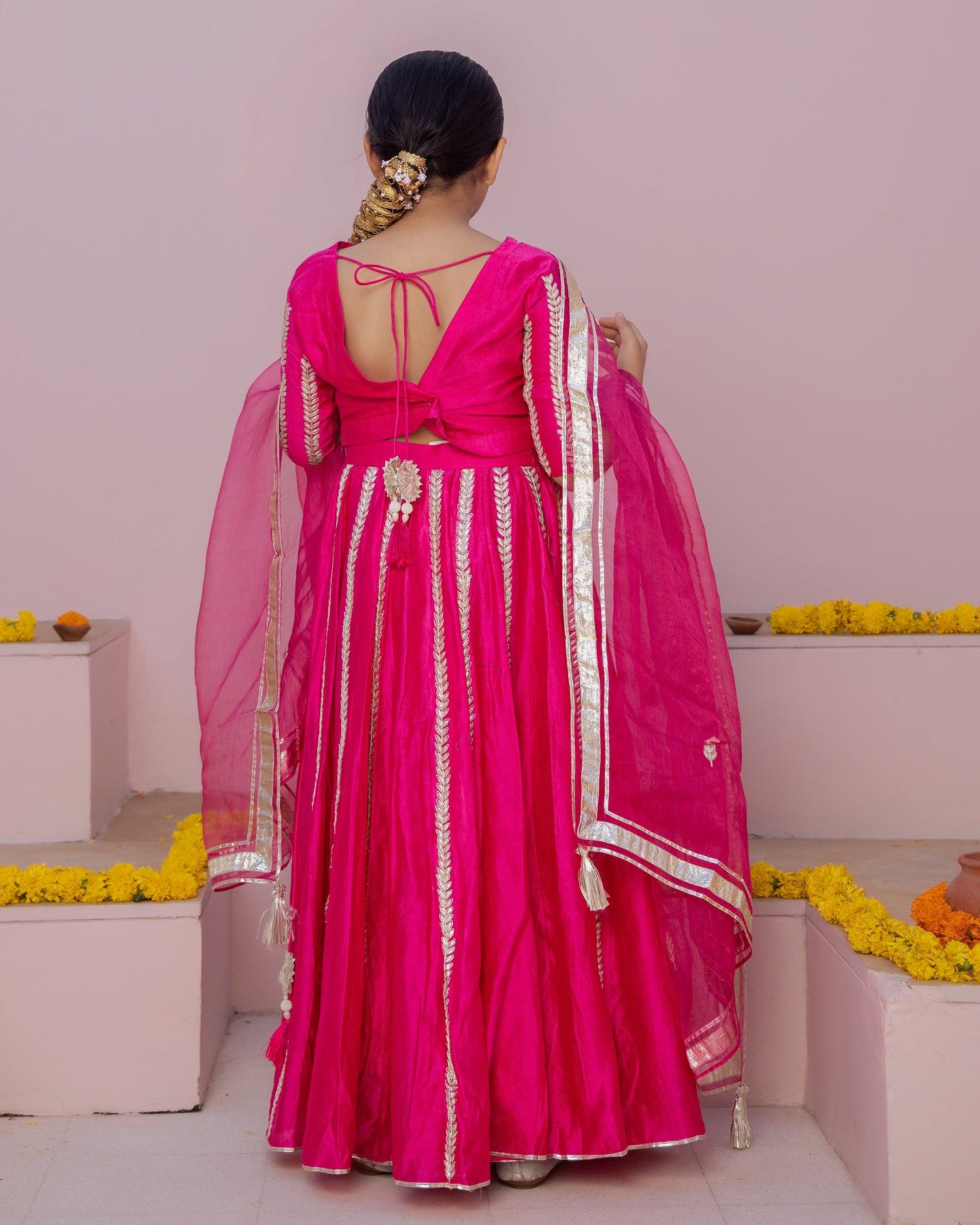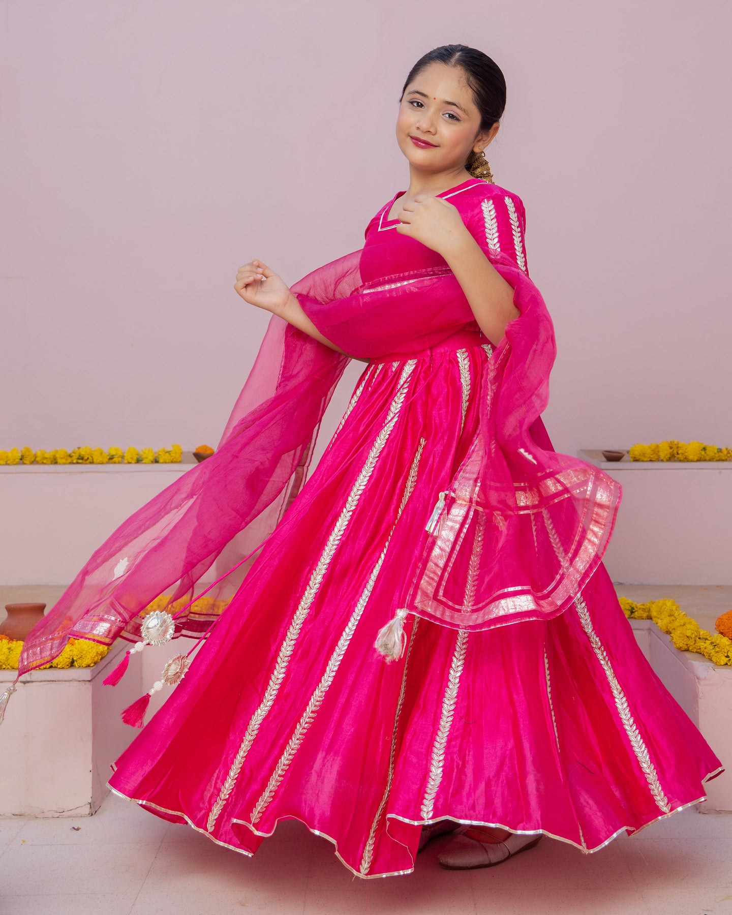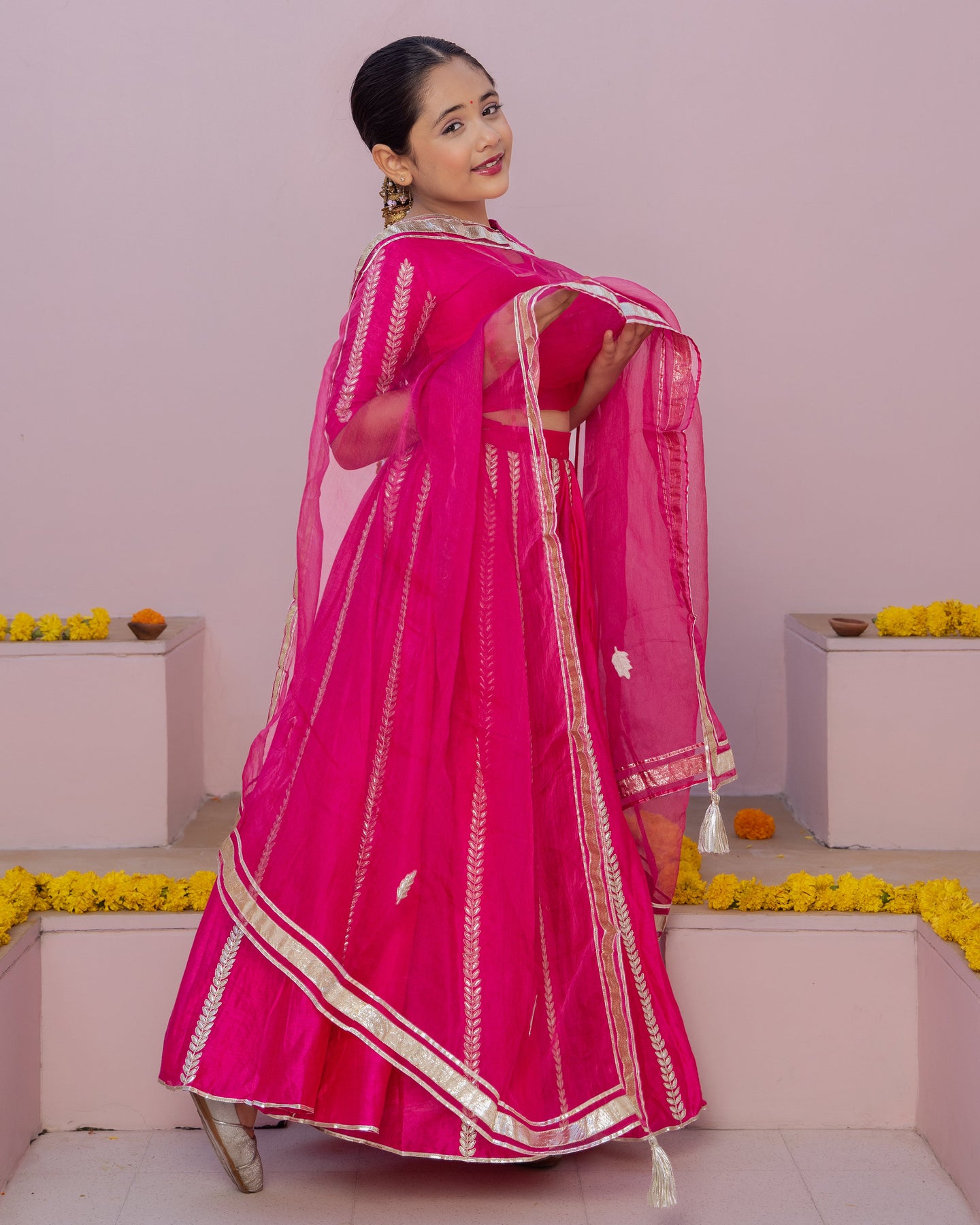 Ruh Magenta Solid Chanderi Lehenga Set