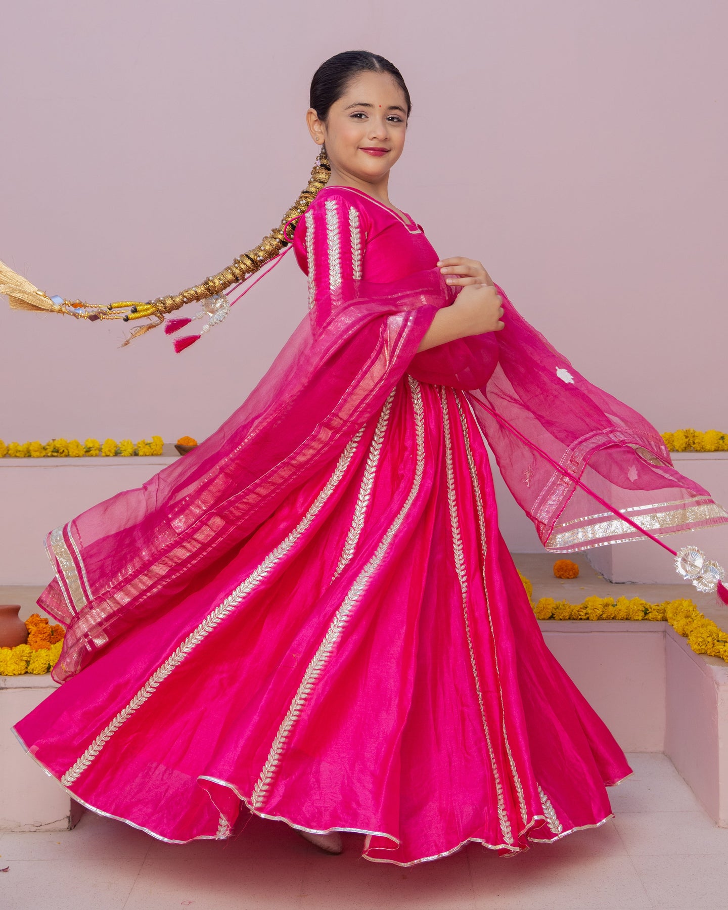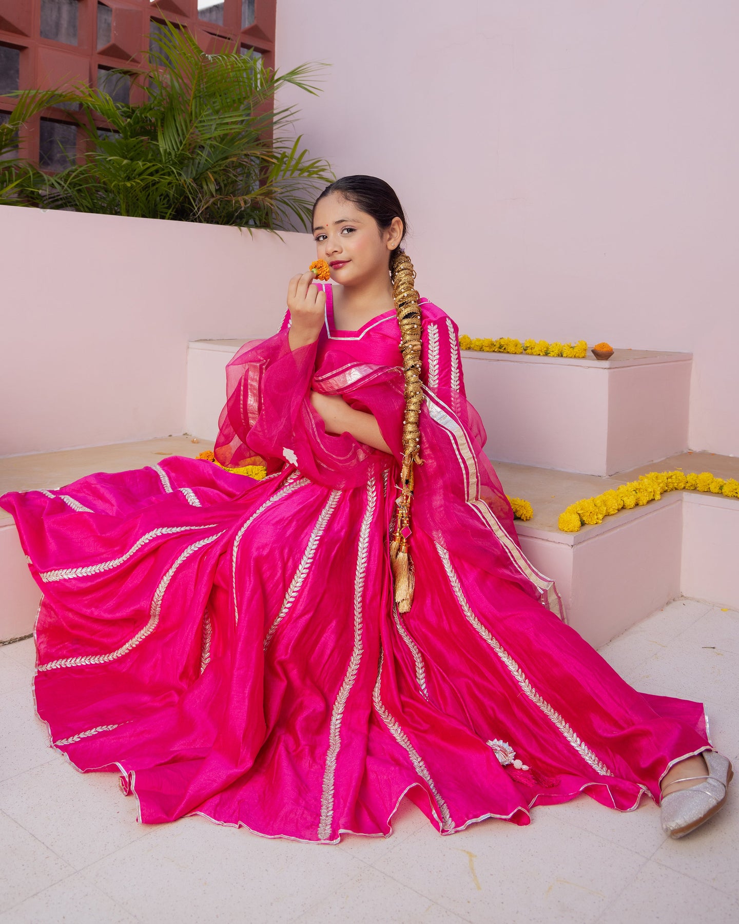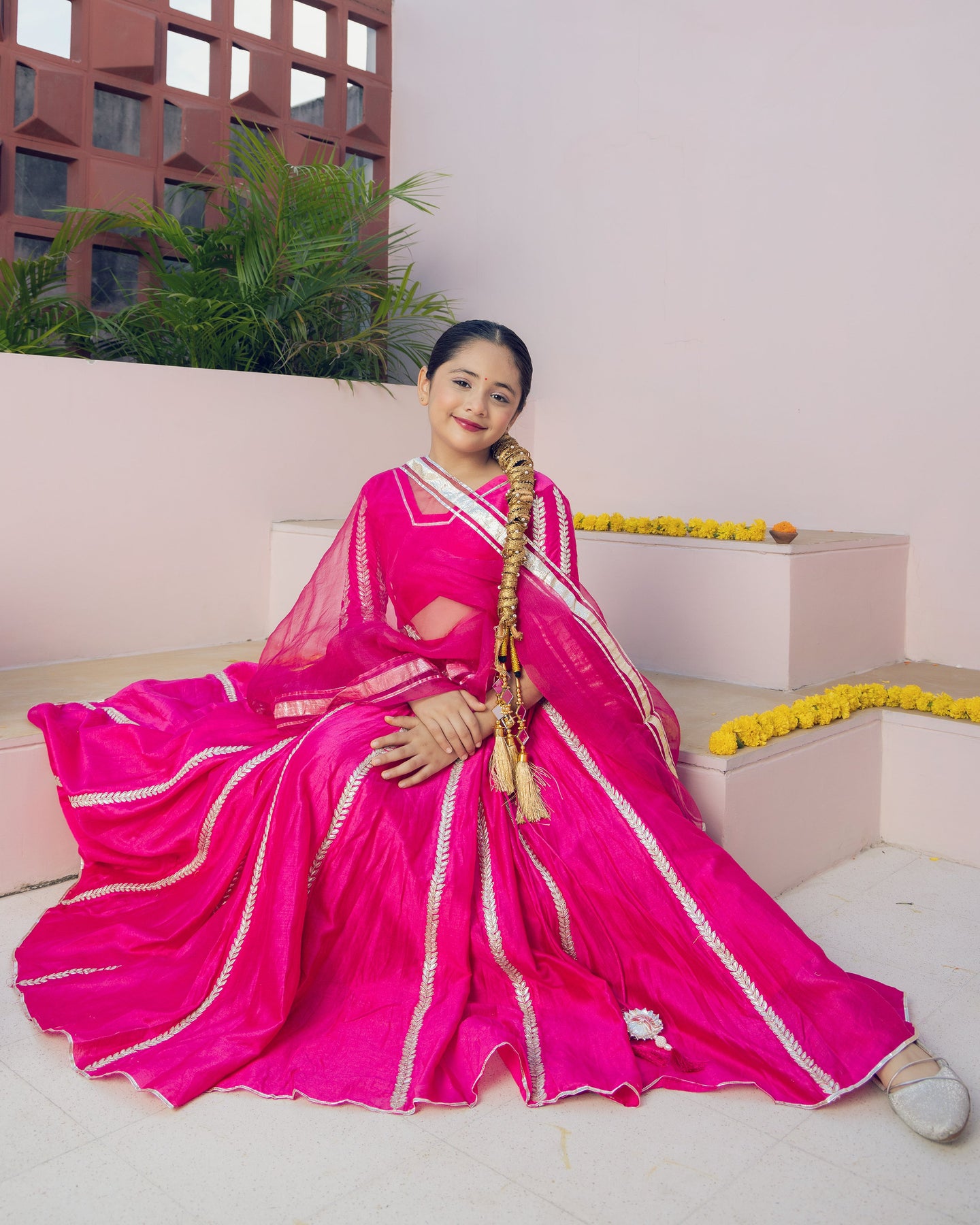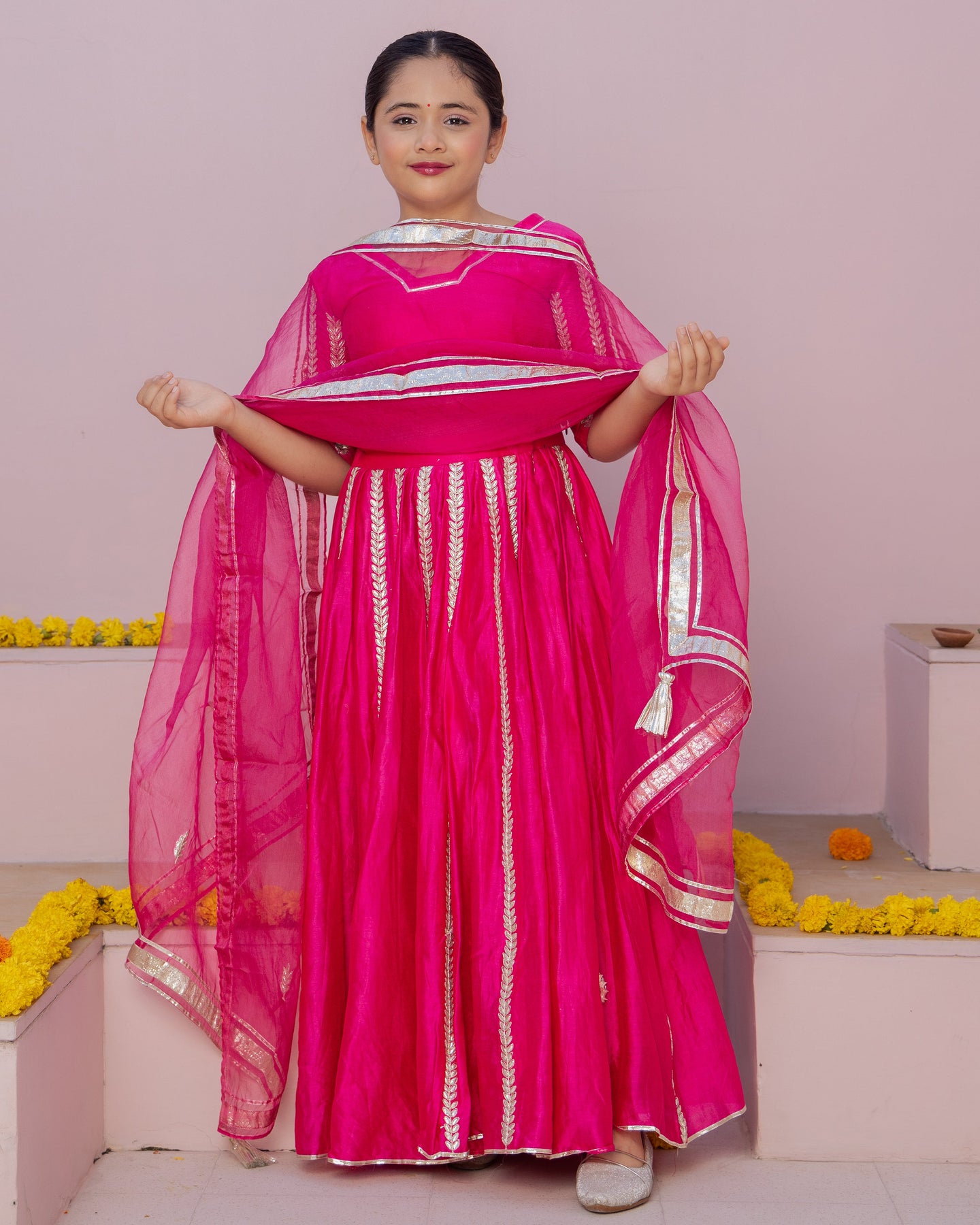 Ruh Magenta Solid Chanderi Lehenga Set