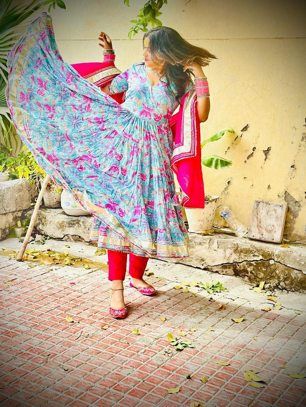 "I'm absolutely in love with this dress from Aachho .The vibrant color is stunning, and the intricate design is truly eye-catching. The combination of both makes this dress a showstopper. Perfect for any occasion, it's a must-have in your wardrobe!"